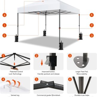 • Amada 10x10ft 1-Person Setup Pop Up Canopy Tent - Easy Outdoor Sun Shade for Events, Parties, Camping, Gazebo with Wheel Cover Bag, Beach Tent with 3-Speed Adjustable Height,White