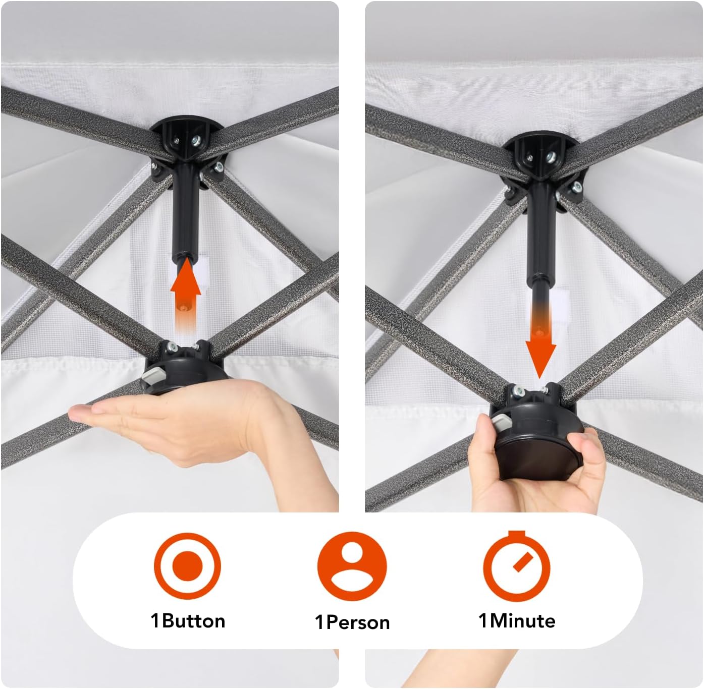 Amada 10x10ft 1-Person Setup Pop Up Canopy Tent – Easy Outdoor Sun Shade for Events, Parties, Camping, Gazebo with Wheel Cover Bag, Beach Tent with 3-Speed Adjustable Height,White